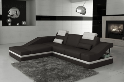 Canapé d'angle en cuir italien 5 places ELVIR, noir et blanc
