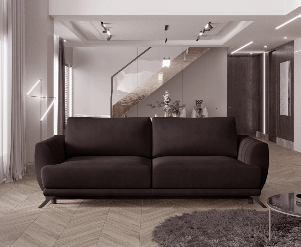 Très joli canapé 3/4 places convertibles en tissu luxe haut de gamme qui vous ravira par son très bon confort. Style épuré et minimaliste et élégant. Avec ses coutures chics. Jolis accoudoirs aux coutures verticales qui donnent un style encore plus exclusif. Pieds hauts de 13 cm qui vous faciliteront le nettoyage sous le canapé. Des dossiers moelleux et spacieux pour une bonne détente. Fabrication européenne de qualité.