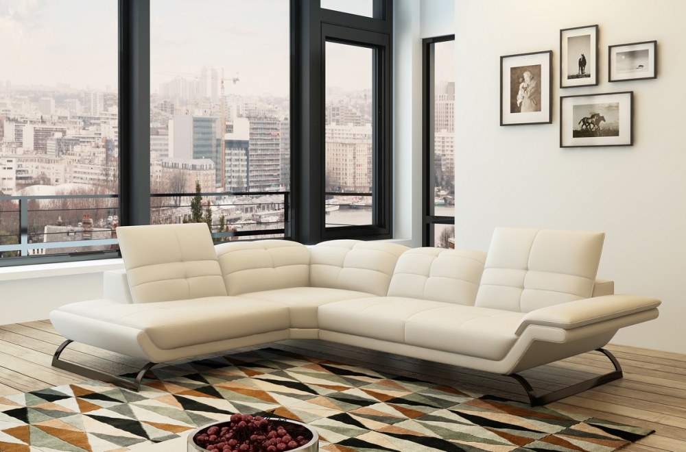 Canapé d'angle en cuir italien 5 places MODERNI, blanc