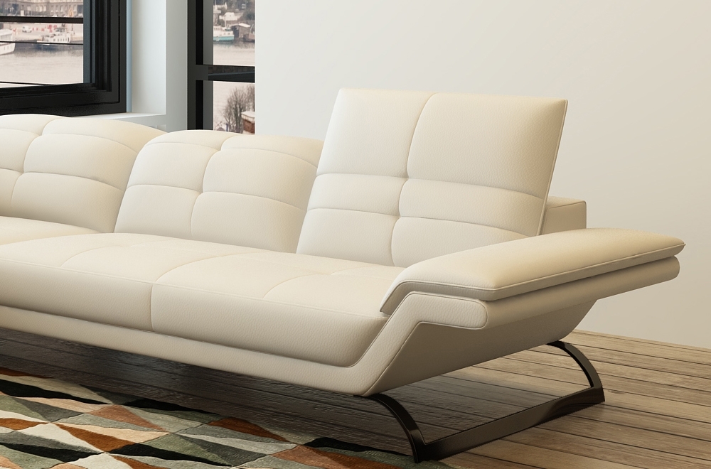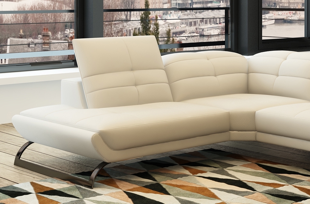 Très joli canapé design en cuir italien de grand luxe. Ultra-tendance, avec son piètement très recherché. Très confortable, ce superbe modèle est un excellent choix. Avec sa jolie méridienne très pratique. Il possède des tétières réglables neauveau modèle. Très belle qualité de fabrication et de finition.