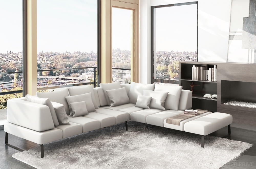 Canapé d'angle en cuir italien 6/7 places ELENA, blanc
