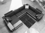 Canapé d'angle en cuir italien 8 places BENTLEY, noir et blanc