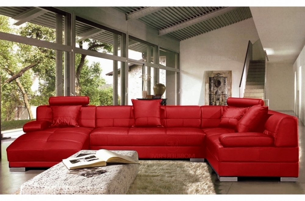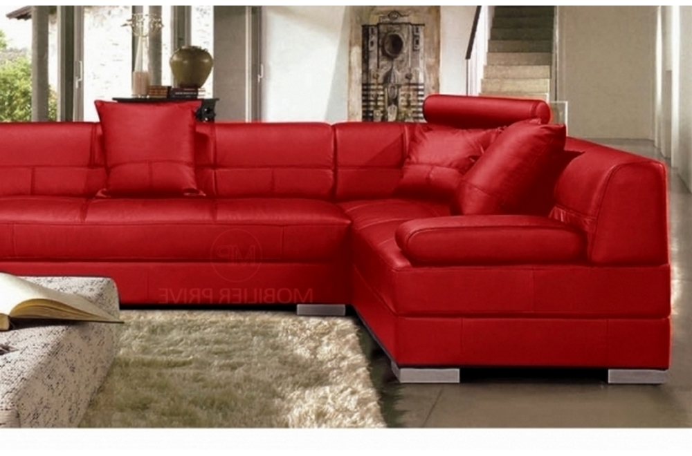 Canapé d'angle en cuir italien 8 places NAPOLI, rouge, angle droit