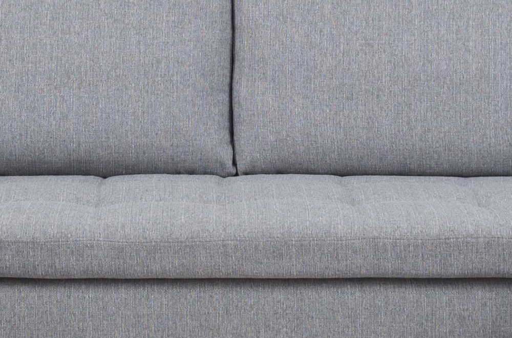 Découvrez ce très beau canapé de style très tendance en tissu gris clair de qualité. Dispose d'une méridienne pratique. Vous apprécierez son excellent confort. Sélectionné pour sa haute qualité de fabrication et son beau tissu. Pieds en bois noir.