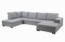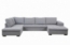 Canapé d'angle panoramique en tissu de qualité 6/7 places BOSTAR, gris clair avec méridienne, angle gauche et méridienne à droite
