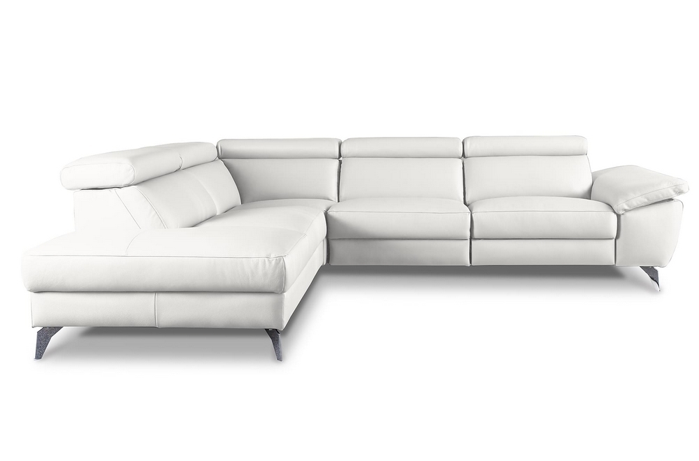 Canapé d'angle relax en 100% tout cuir épais de luxe italien avec relax électrique, 5/6 places KASTER, blanc cassé, angle gauche