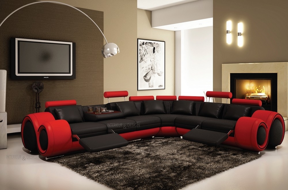 Canapé d'angle VENDOME en cuir haut de gamme italien vachette Vénésetti. Cuir supérieur luxe. Noir N°366 Rouge N°012. Angle idem photo (angle droit vu de face)- Vénésetti. 2 tables Ritz
