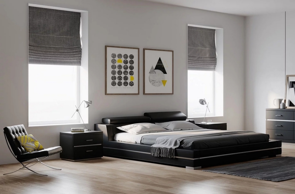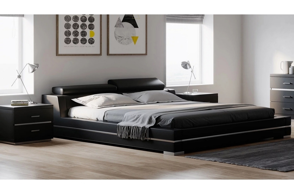 Lit design en cuir italien de luxe FENDO, avec sommier à lattes, noir, 160x200