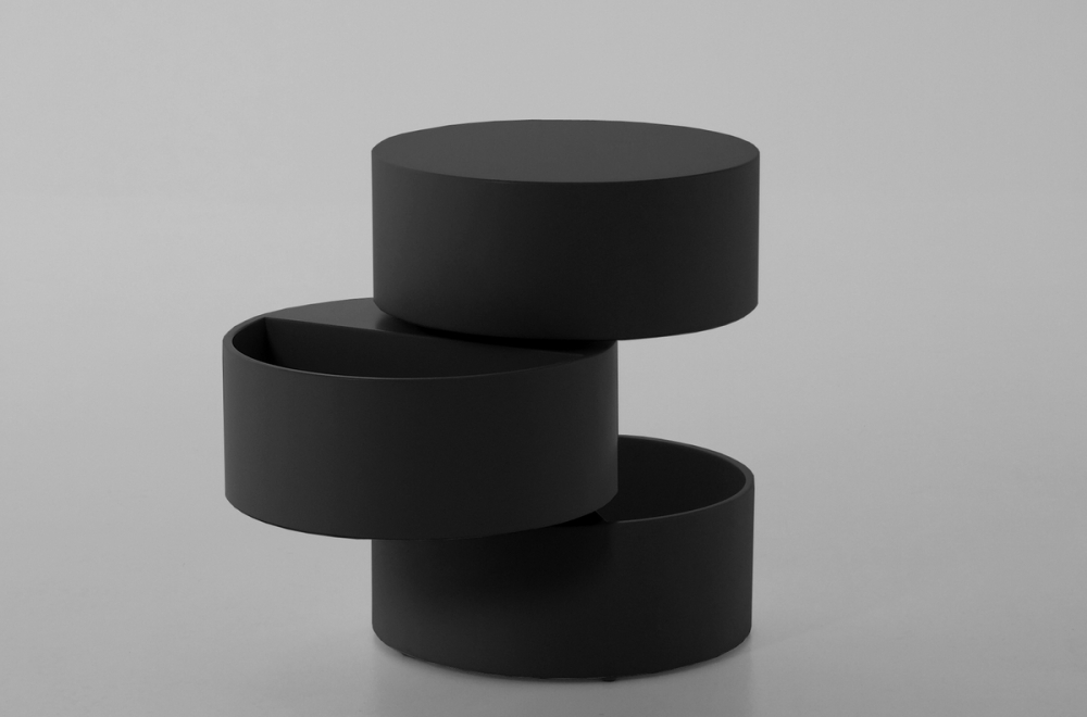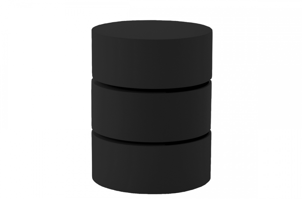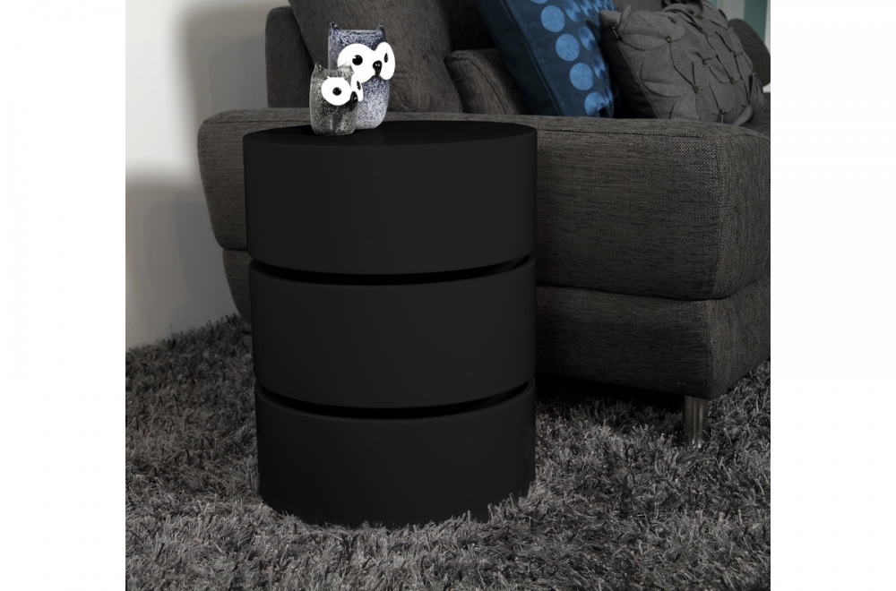 Superbe et originale table basse design, en bois laqué NOIR mat, POOL. Avec rangement pratiques grâces à son système de rotation des 3 compartiments. Parfaite pour agrémenter votre décoration. Belle qualité de fabrication et de finition. Diamètre 40 cm et hauteur 51 cm.